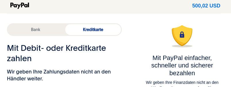 Diesmal wurden 500,02 USD als Kaufpreis gewürfelt. Ich wundere mich über den seltsamen Umrechnungskurs. Aber ist doch alles sicher mit Paypal, oder?